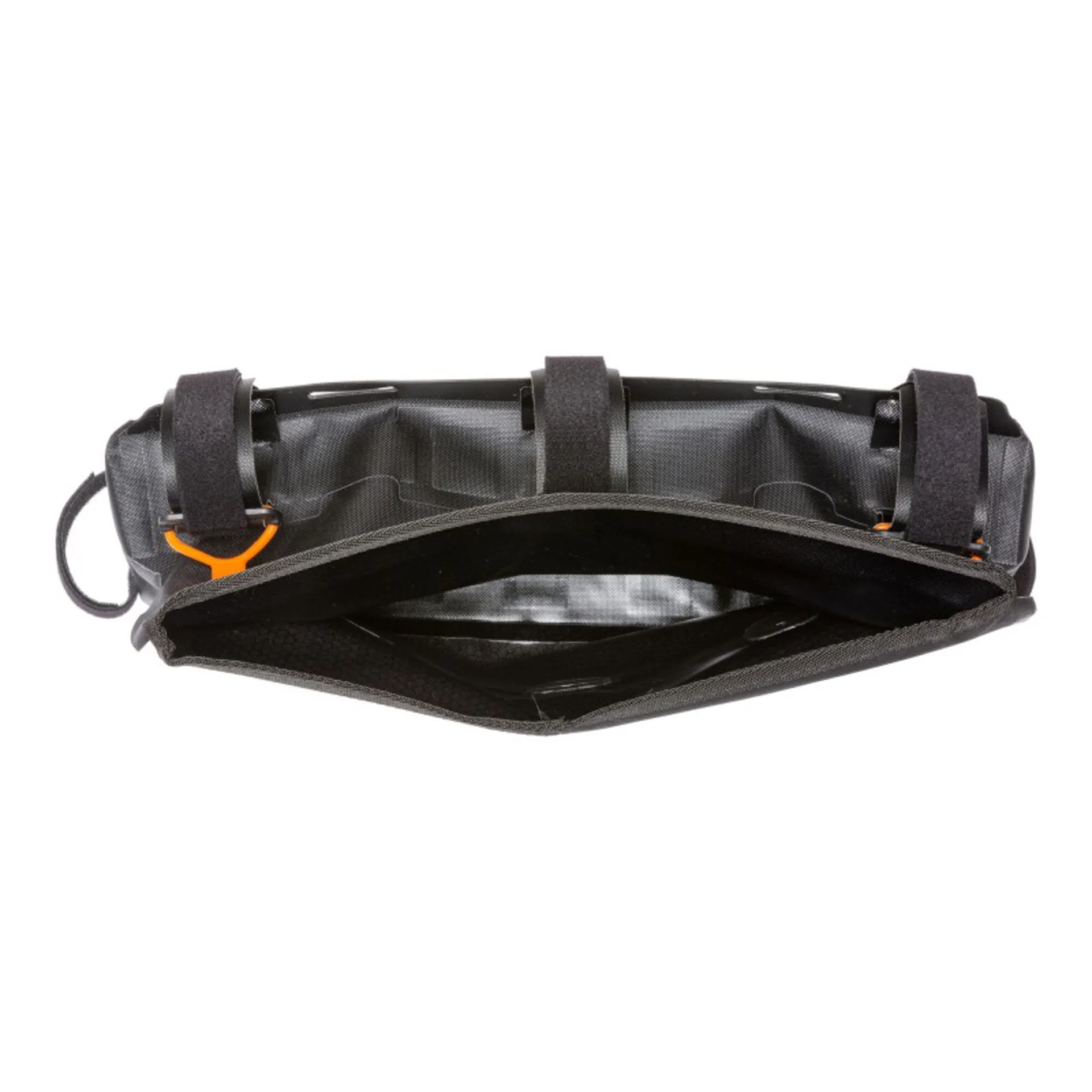 Part of ORTLIEB’s bikepacking series, this bag with roll closure meets the IP64 standard for waterproofness, meaning your gear is fully protected from an involuntary bath. With its 4 litre volume, the Frame-Pack RC Toptube enables heavy equipment such as tent poles, tools or food to be carried within the frame triangle, maintaining the bike’s low centre of gravity. The customizable, sturdy and strong Velcro fasteners enable simple and easy fastening, and an uncomplicated installation. The frame pack RC Toptube is made in Germany and PVC-free. Together with the other products from the ORTLIEB bikepacking series, the frame pack RC Toptube forms the ideal equipment for an overnighter, a self-supported race or your next big adventure.