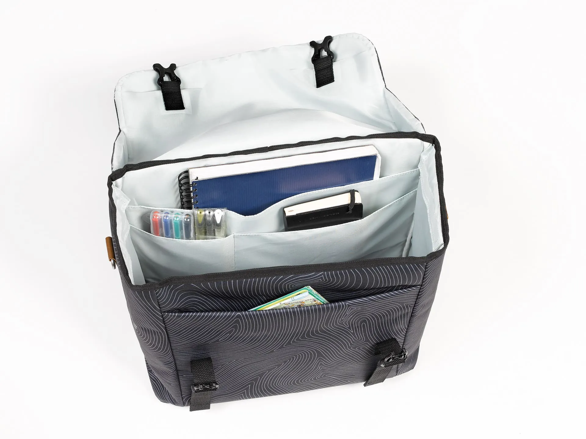 The stylish shoulder bag ba-s87 from xlc is not only water repellent, but is also extremely spacious with four inner compartments. That means you can transport all your work things on your bike and when you're there, use the shoulder strap to carry them comfortably into the office.
