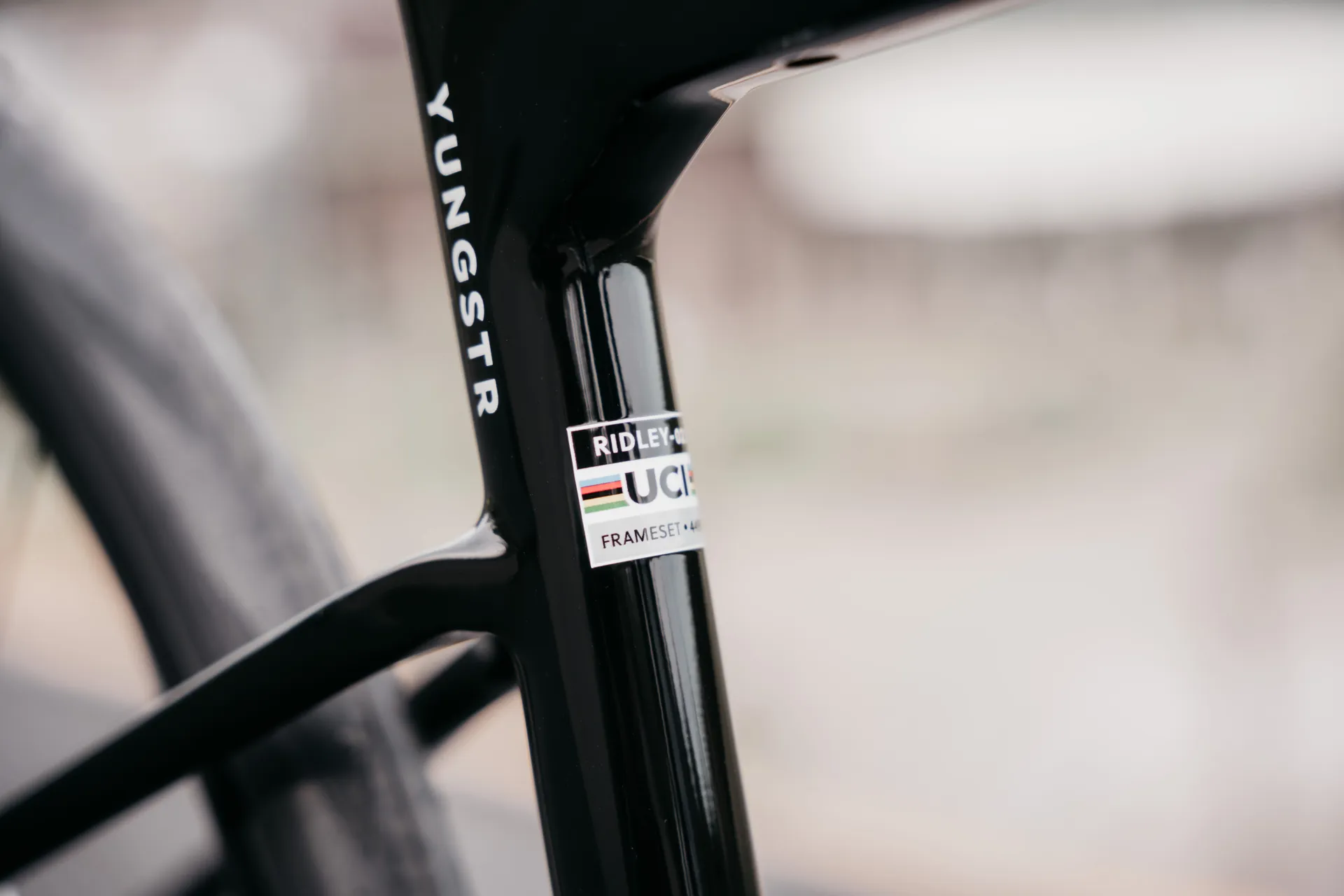 The YUNGSTR is built with an ultralight carbon frame that’s race-ready from the start. This bike is designed to give young riders the same advantages pros demand: low weight, stiffness, reliability, and versatility.