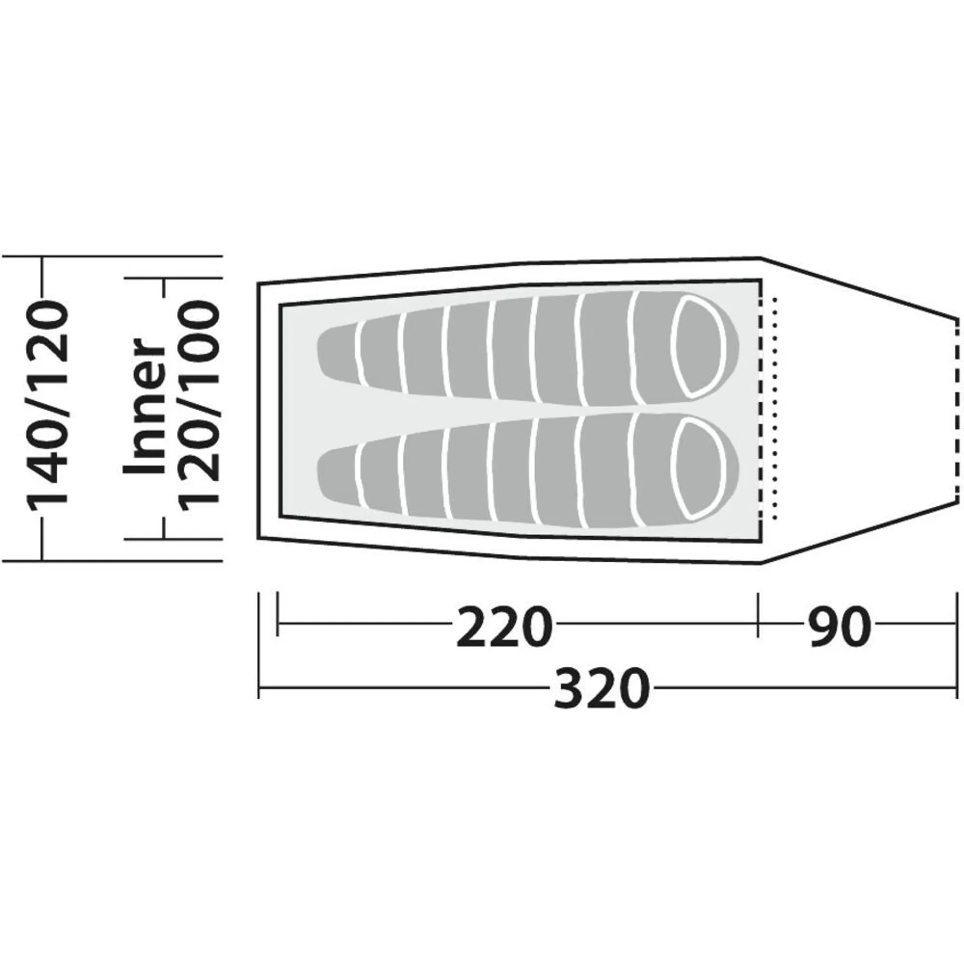 Robens Arch 2 is a simple tapered twin-hoop design in a 2-person tent.